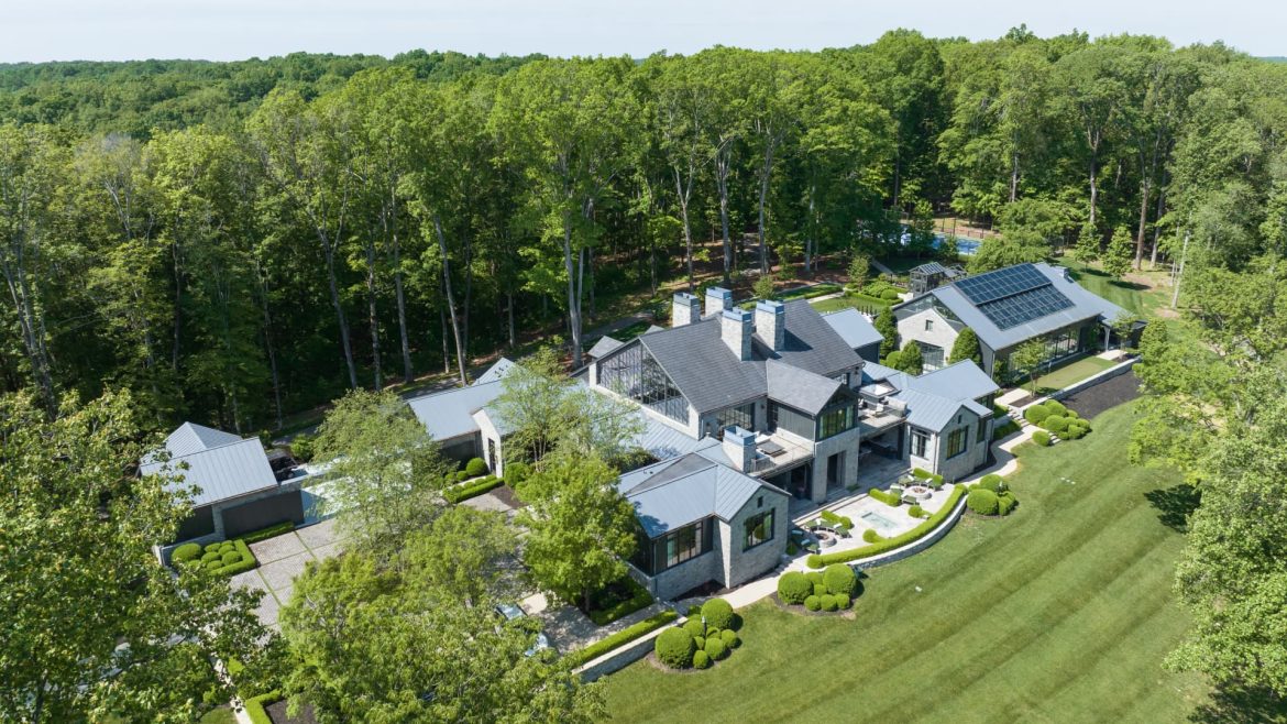 The main residence spans an impressive 10,626 square feet and features five bedrooms, seven bathrooms, and luxurious amenities. The estate also includes a barn, guest house, and a man-made lake for fishing and swimming.
